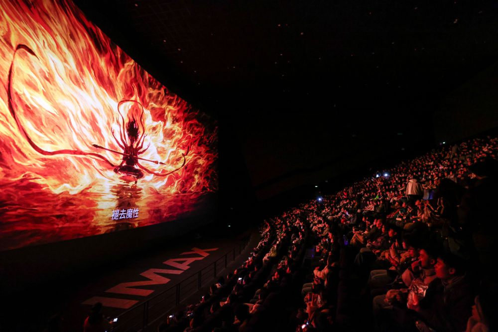 2025年2月25日,观众在贵州省贵阳越界影城IMAX影厅内观看电影《哪吒2》。